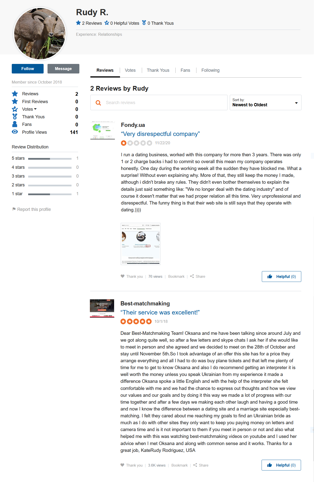 Maybe Rudy Rodriguez or the agency contacted Olga Rezinkova intentionally to place his fabricated testimonial on her YouTube channel well known to review the dating scene in the Ukraine.