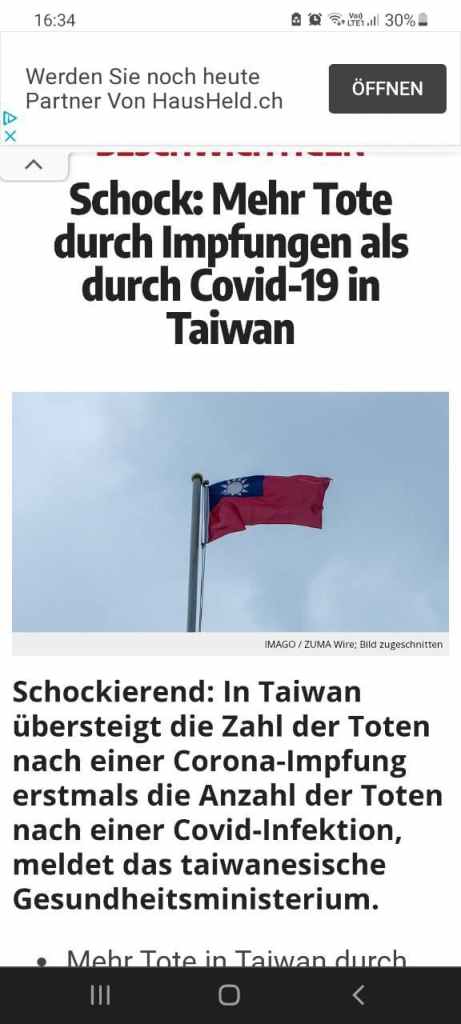 Leider wurde diese Meldung in Taiwan nur von wenigen Medien aufgegriffen. Es ist wie bei uns in Deutschland. Alles, was ein kritisches Licht auf das Impfen wirft, wird lieber übergangen. So wird eine mündige Entscheidung des Bürgers dort wie hier millionenfach verhindert.